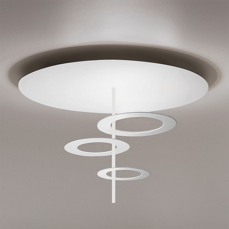 ICONE - Hula Hoop P3 è una lampada da soffitto dal design elegante e moderno, ideale per illuminare ambienti come camere da letto, salotti e zone living in generale. Fornita di alimentatore e fonte luminosa a LED da 55w integrato, è possibile scegliere tra temperatura colore 2700K o 3000K CRI90. Hula Hoop P3, plafoniera a luce riflessa ad elevatissima efficienza energetica ha un resa luminosa di 5500lm.