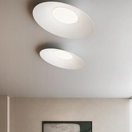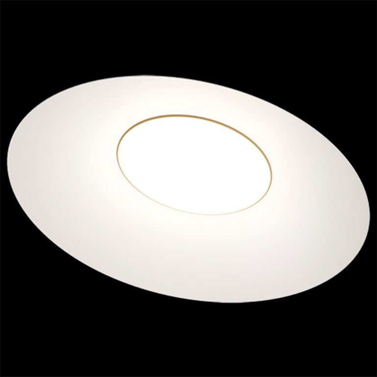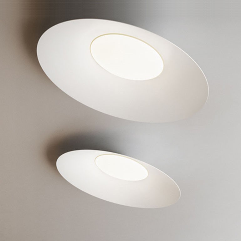 KUNDALINI – Kate è una lampada da soffitto in alluminio, dalle forme architetturali e dimensioni non convenzionali. Il copricapo sfoggiato dalla duchessa di Cambridge per i 70 anni del giubileo inglese, ispira Kate, la plafoniera che riscrive le regole percettive dello spazio. Questa lampada dalla forma conica è posizionata a soffitto con un’inclinazione di 15 gradi in modo da diffondere la luce in maniera inaspettata. Kate con diffusore opalino e struttura in alluminio verniciato bianco è dotata di LED da 60W, 2700K 6600lm o 3000K 6835lm dimmerabili.