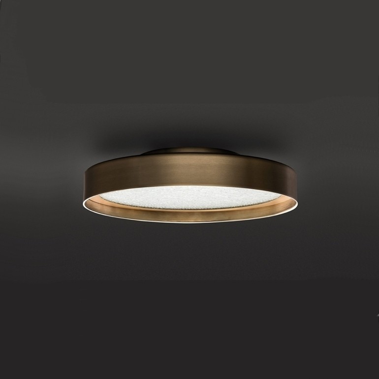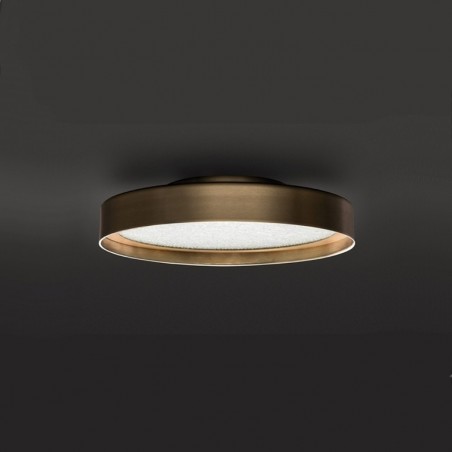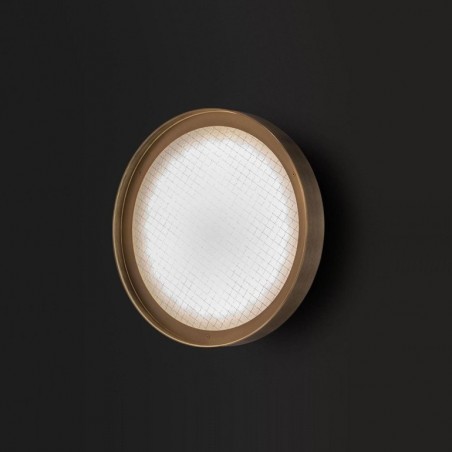 OLUCE - Berlin, design Christophe Pillet, un oggetto che ridiscute l’accezione comune di plafoniera, capovolgendone la tradizionale discrezione per trasformarla in una presenza elegante e decorativa. Disponibile nelle versioni ø30, ø40 e ø 50 utilizzabili sia a parete che a soffitto, Berlin si concretizza in un anello metallico dallo spessore importante e dal profilo sottile, al cui interno è racchiuso un disco in vetro retinato. La finitura richiama echi déco, riportati alla contemporaneità dalle forme. Dotata nella versione ø30 di due portalampada E14, nella versione ø40 di due portalampada E27 e nella versione ø 50 di 4 portalampada E27, è fondamentale l'utilizzo di lampadine Led Retrofit non comprese.
