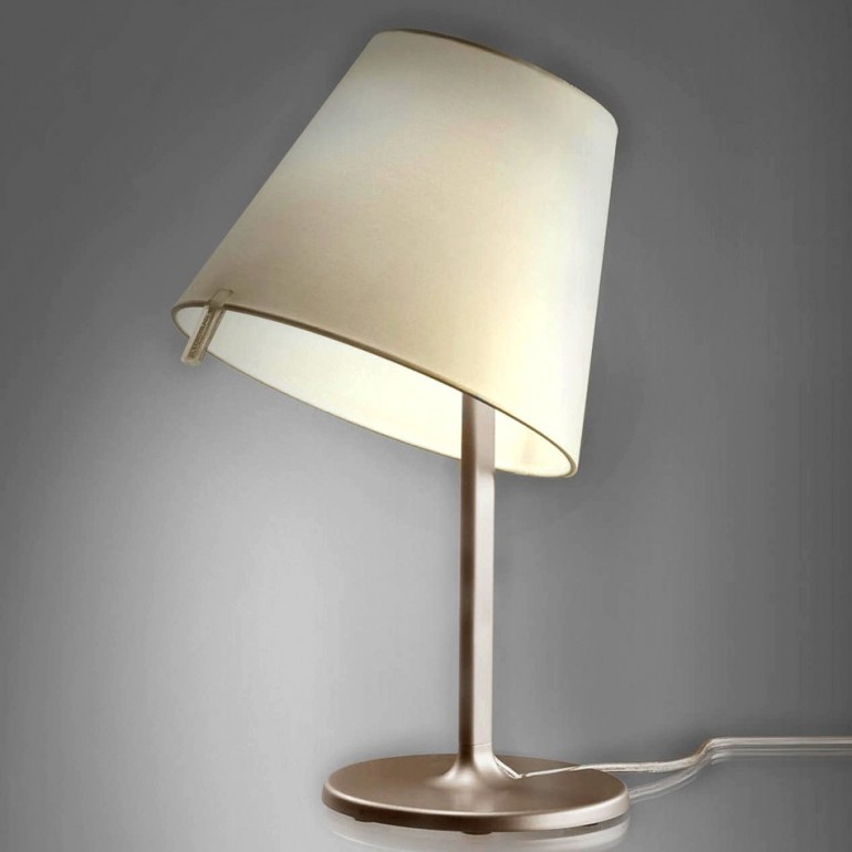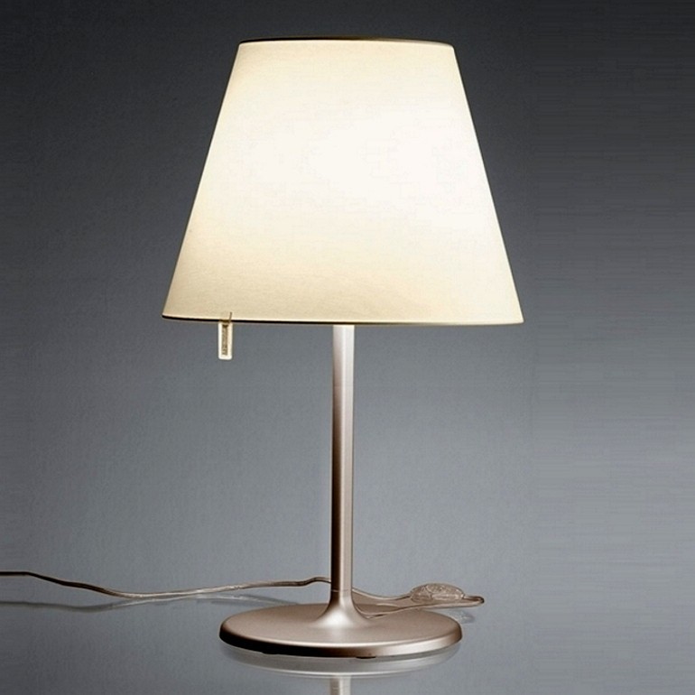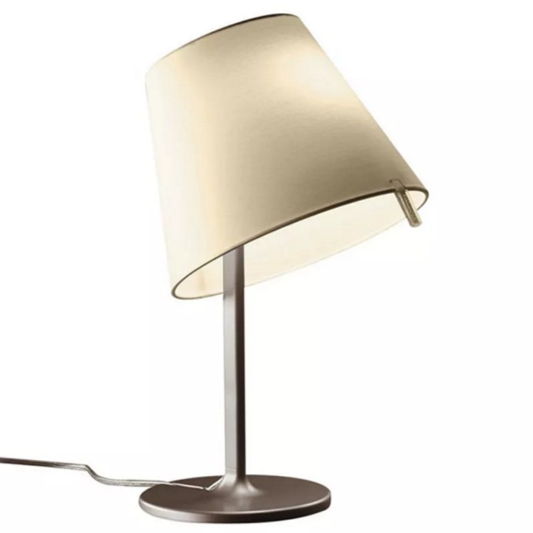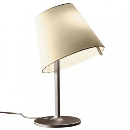 ARTEMIDE - Melampo da tavolo è realizzata con base in zama vernciata, stelo in alluminio verniciato, diffusore in raso di seta plasticato all'interno e orientabile in tre diverse posizioni. Sono disponibile due differenti combinazioni, struttura e diffusore grigio, struttura bronzo con diffusore ecrù. Melampo tavolo, dotato di due portalampada E27, permette l’utilizzo di lampadine alogena 57w o LED da 8w escluse.