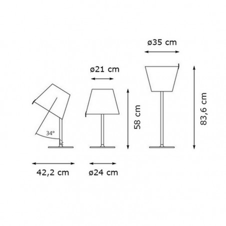 ARTEMIDE - Melampo da tavolo, design Adrien Gard , è realizzata con base in zama vernciata, stelo in alluminio verniciato, diffusore in raso di seta plasticato all'interno e orientabile in tre diverse posizioni per avere una luce diretta oppure indiretta e diffusa. Sono disponibile due differenti combinazioni, struttura e diffusore grigio, struttura bronzo con diffusore ecrù. Melampo tavolo, dotato di due portalampada E27, permette l’utilizzo di lampadine alogena 57w o LED da 8w escluse.