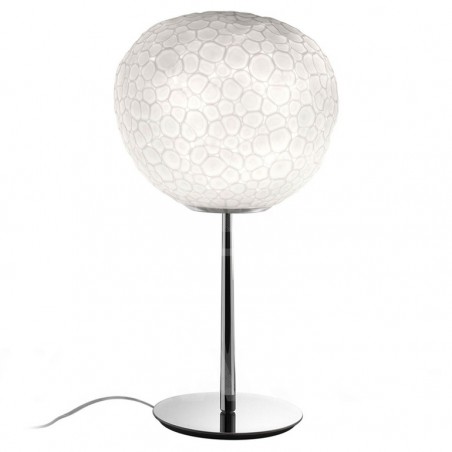 ARTEMIDE - Meteorite 35 tavolo stelo è caratterizzata da un diffusore in vetro soffiato e un corpo lampada in polimero tecnico,alluminio e acciaio. La particolarità che contraddistingue questa lampada è il diffusore, realizzato in vetro artistico a doppio strato, ottenuto con la tecnica artigianale della soffiatura in stampo a fermo e la conseguente molatura. Meteorite 35 tavolo stelo è la lampada ideale per l’utilizzo in salotto, in camera da letto, in uno studio, come pure appoggiata su mobile del living per creare una luce morbida e rilassante. Ovunque la mettiate darà risalto e importanza al vostro arredamento. Le lampadine utilizzabili possono essere di tipo alogeno da 150w o LED 21W dimmerabili con attacco E27 escluse.
