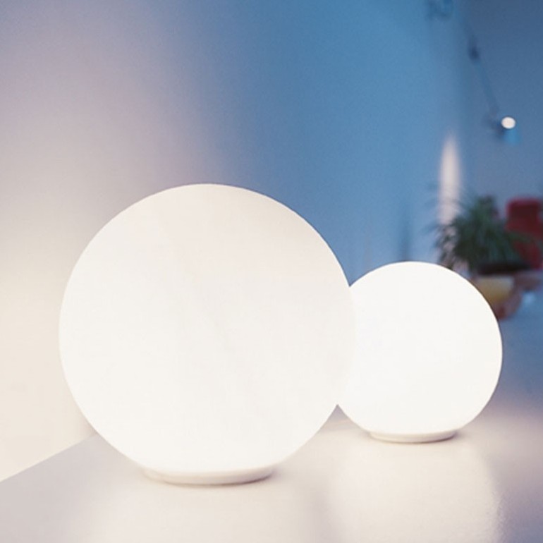 ARTEMIDE - Dioscuri 42 tavolo è una lampada a luce diffusa con base in resina termoplastica e diffusore in vetro soffiato acidato. Dioscuri da tavolo di Artemide è disponibile in quattro dimensioni. Le lampadine utilizzabili possono essere di tipo Alogena 150w o LED 21w dimmerabile con attacco E27 escluse.