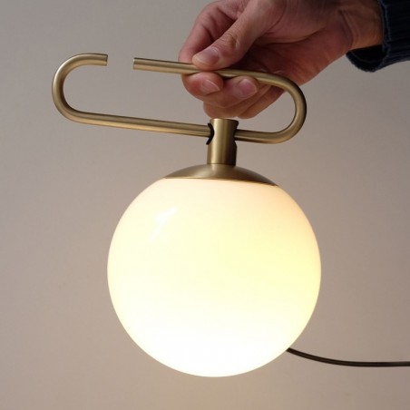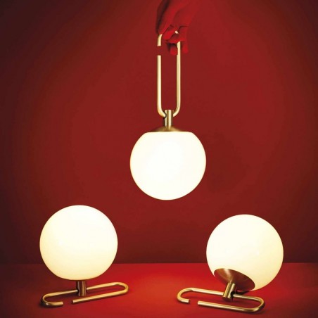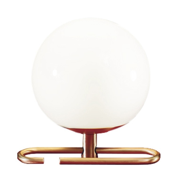 ARTEMIDE – Nh 1217, una sfera in vetro soffiato bianco di diametro 14 cm con un anello in ottone spazzolato che gli consente di assumere differenti configurazioni e possibili utilizzi. La lampada Nh 1217, espressione di un design responsabile e sostenibile, è dotata di portalampada E14 che permette di utilizzare lampadine Led da 5w esclusa. Della stessa serie troviamo versioni da parete e a sospensioni.