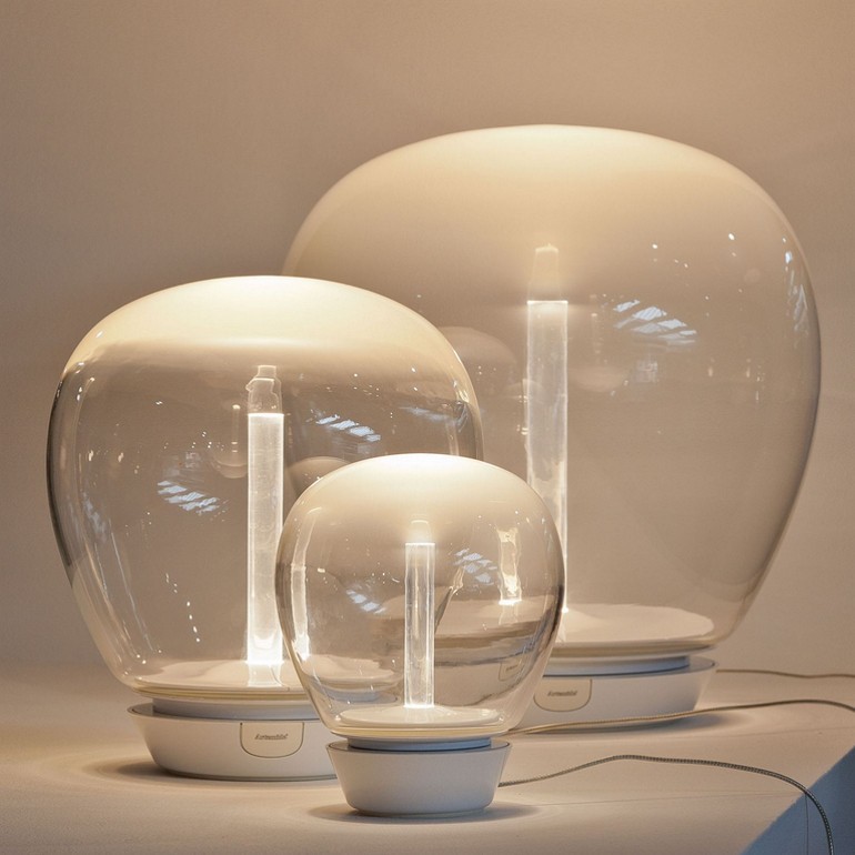 ARTEMIDE – Empatia 36 da tavolo, associa una tecnologia LED ultra performante da 26w 1273lm CRI 90 alla tradizione dei soffiatori di vetro veneziani. Ogni diffusore è un pezzo unico realizzato artigianalmente per riflettere la luce in modo ottimale da qualsiasi angolo senza essere abbagliante, grazie ad un sapiente utilizzo dell’opacità del vetro che si dematerializza e lascia progressivamente posto alla trasparenza.