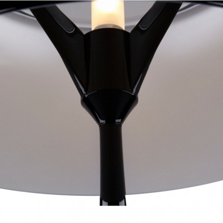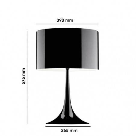 FLOS – Spun Light T1 è una lampada da tavolo a luce diffusa con corpo e diffusore in metallo tornito in lastra, bracci supporto diffusore e supporto portalampada in lega d'alluminio pressofuso, tutti verniciati a liquido nei colori bianco, nero o Mud. Nella parte superiore del diffusore è presente uno schermo in vetro pressato con finitura sabbiata che nasconde alla vista la lampadina che può essere di tipo alogena da 105W o Led da 8w E27 escluse. Sul cavo è presente il dimmer che consente la regolazione a step dell'intensità luminosa