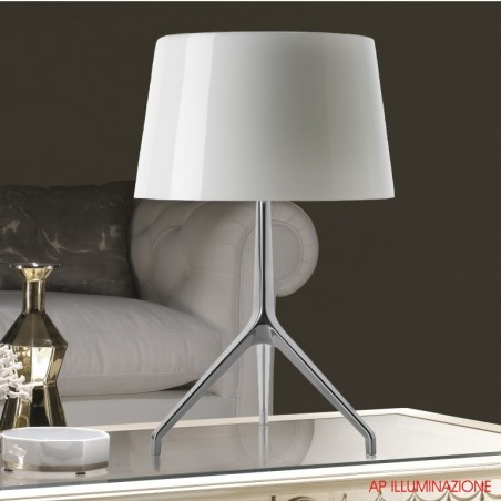 FOSCARINI- Lumiere tavolo XXL, storia lampada del catalogo Foscarini disegnata da Rodolfo Dordoni, è caratterizzata in questa versione dal particolare vetro soffiato con un taglio più netto rispetto alla Lumiere tradizionale e dalla particolare e inconfondibile struttura a treppiedi che lo sorregge. Iconica e dal design unico e inimitabile, Lumiere XXL viene proposta con tre abbinamenti di colore per il diffusore e due abbinamenti di colore per il fusto, dando così la possibilità a ognuno di interpretare e personalizzare la lampada a proprio gusto. Lumiere XXL, dotata di serie di dimmer per la regolazione della luce, è fornita di quattro portalampada G9 che permettono di utilizzare sia lampadine alogene fino a 33w o Led escluse.
