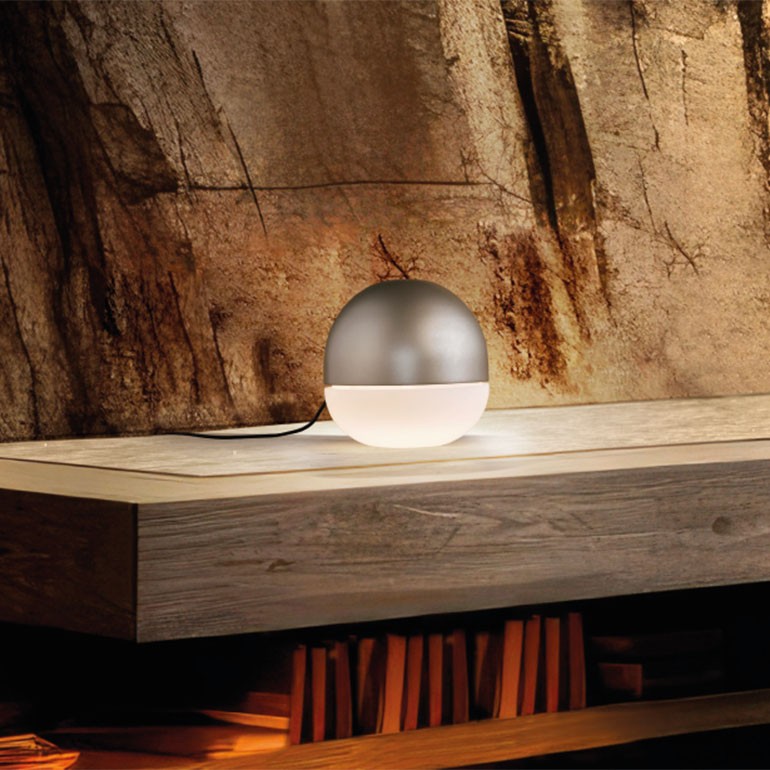 ICONE - Ghianda tavolo con spina, lampada in metallo tornito in allumini con policarbonato opale a sfumatura variabile anti abbaglio. Fornita di led 24v. da 7,5w 850lm 3000°K dimmerabile