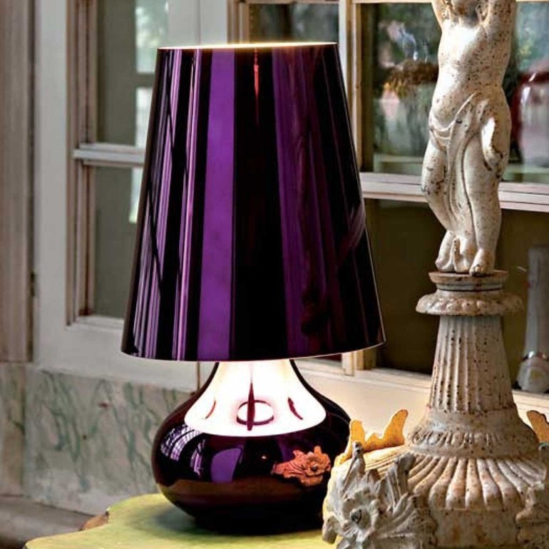 KARTELL - La lampada da tavolo Cindy rievoca e rende omaggio al classico abat-jour tipico degli anni 70. Progettata da Ferruccio Laviani, questa lampada ha uno stile particolare e giocoso, composta da un cappello conico che sovrasta una base a forma di goccia bombata. La sua particolarità consiste nella superficie lucida metallizzata e colorata che gli conferisce uno stile originale e fuori dagli schemi. Grazie alla sua conformazione e la scelta dei materiali, questa lampada si trasforma in un punto luce capace catturare subito lo sguardo e donare una grande personalità all'ambiente e all’arredo. Dotata di portalampada E27 e di lampadina Led da 15w a corredo.