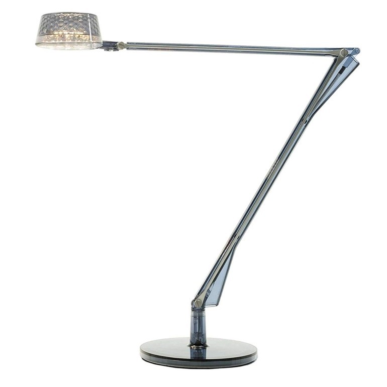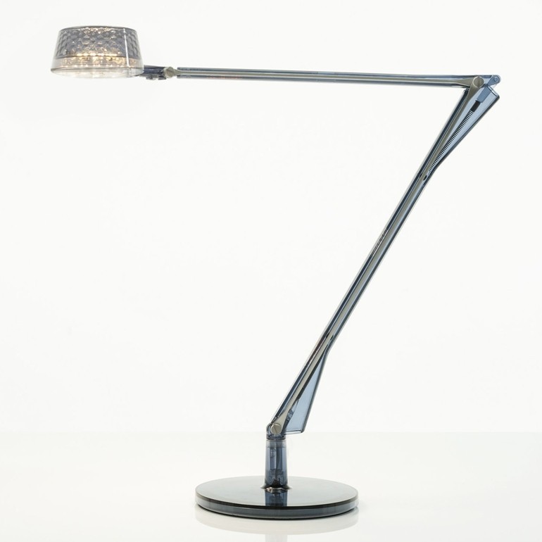 KARTELL - Aledin Dec è una lampada da tavolo a LED caratterizzata da una testa leggermente conica con all’interno un riflettore sfaccettato, che permette di ottenere un fascio luminoso ampio e morbido. Per tali caratteristiche è più indicata per un utilizzo abitativo, come per esempio in camera da letto, in uno studio, o in salotto come lampada da lettura e relax. I due bracci snodati in policarbonato, che compongono la struttura, si caratterizzano per la presenza di due stecche in alluminio che assolvono alla funzione di conduttori. Dotata di led da 5,6W integrato.