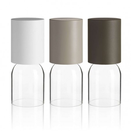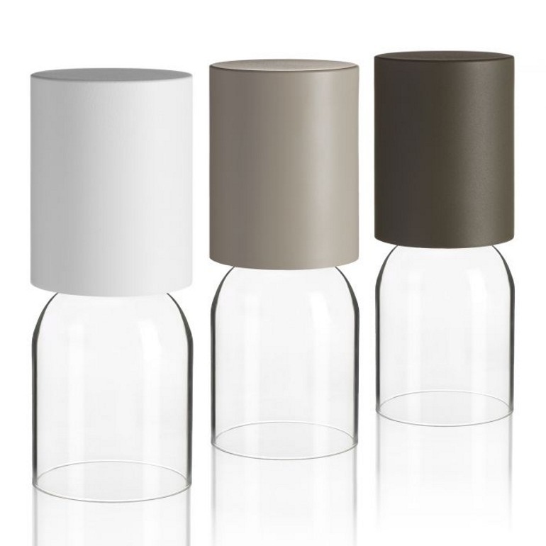 LUCEPLAN – Nui mini, proposta in tre varianti di colore per il cappello (bianco, greige e sabbia), ha la base in cristallo trasparente che contribuisce a creare un sofisticato gioco di riflessi. Nui Mini è dotata di un led da 4w 2700K ricaricabile e la luce è regolabile a piacere a secondo dell'esigenza. Un oggetto raffinato che può portare la luce ovunque desideriate.