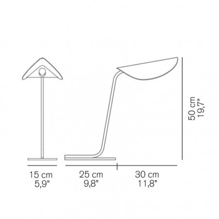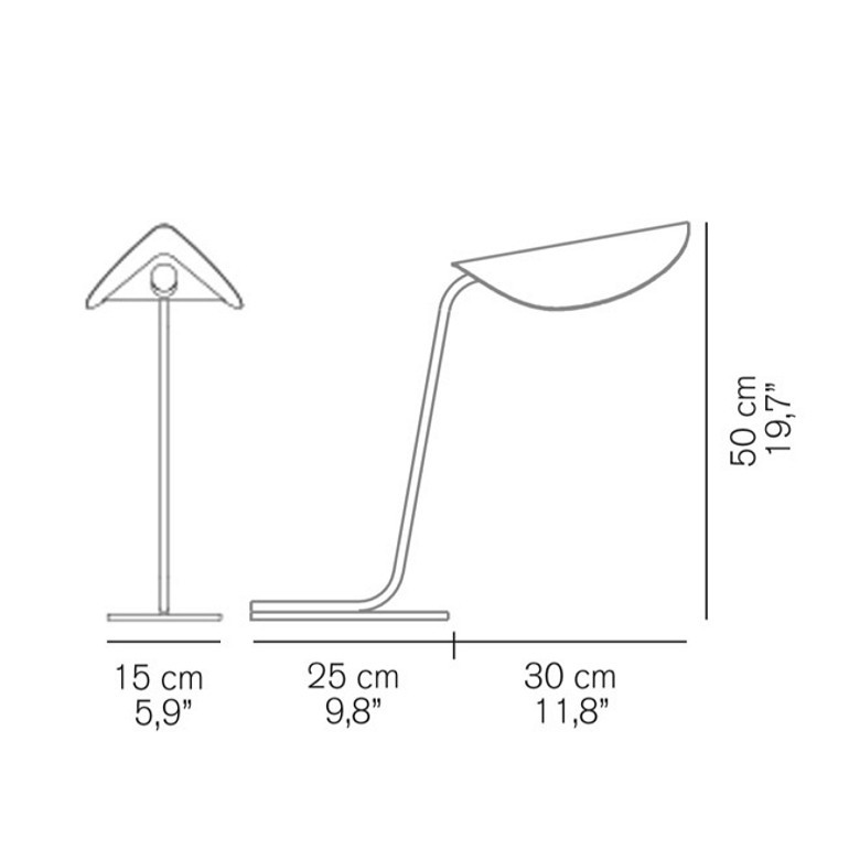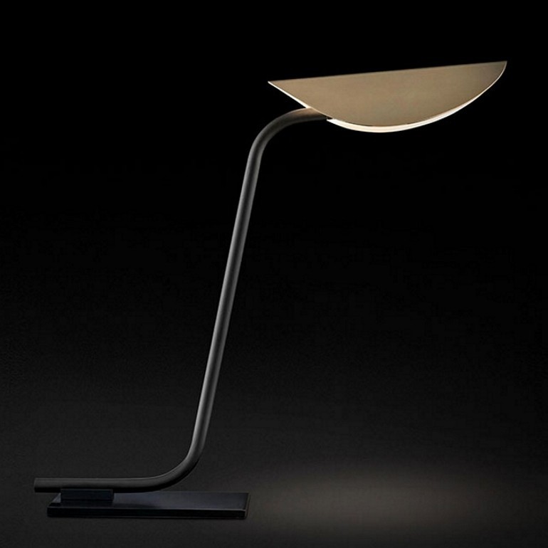 OLUCE - Plum da tavolo accosta un disegno minimale, longilineo e leggero, insieme a una serie di espressioni che ricordano i classici dell’illuminazione degli anni ’50 e all’utilizzo del metallo, configurandosi come una lampada dalla personalità preziosa, classica, ma al tempo stesso attuale. Plum è composto da un sottile stelo che sorregge una sottile superficie in metallo, piegata dolcemente al centro a formare, simbolicamente, una piuma che contiene al suo interno la sorgente luminosa. Dotata di portalampada E14 si possono utilizzare lampadine da 40w alogene o Led Retrofit. Lampadina non inclusa.