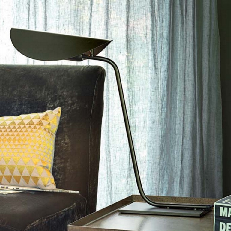 OLUCE - Plum da tavolo, che parte concettualmente da un progetto concepito dal designer francese per il Sezz Hotel di Saint-Tropez e realizzata appositamente per l’hotel attraverso il servizio Bespoke Tailoring di Oluce, accosta un disegno minimale, longilineo e leggero, insieme a una serie di espressioni che ricordano i classici dell’illuminazione degli anni ’50 e all’utilizzo del metallo, configurandosi come una lampada dalla personalità preziosa, classica, ma al tempo stesso attuale. Plum è composto da un sottile stelo che sorregge una sottile superficie in metallo, piegata dolcemente al centro a formare, simbolicamente, una piuma che contiene al suo interno la sorgente luminosa. Dotata di portalampada E14 si possono utilizzare lampadine da 40w alogene o Led Retrofit. Lampadina non inclusa.