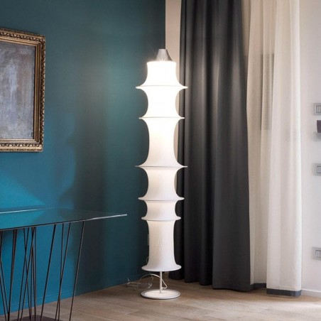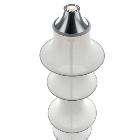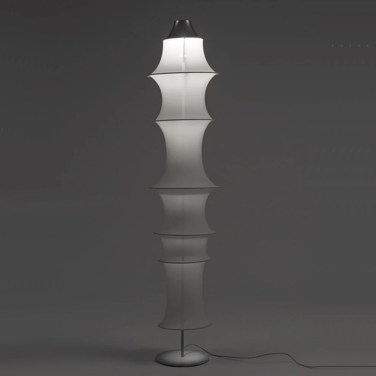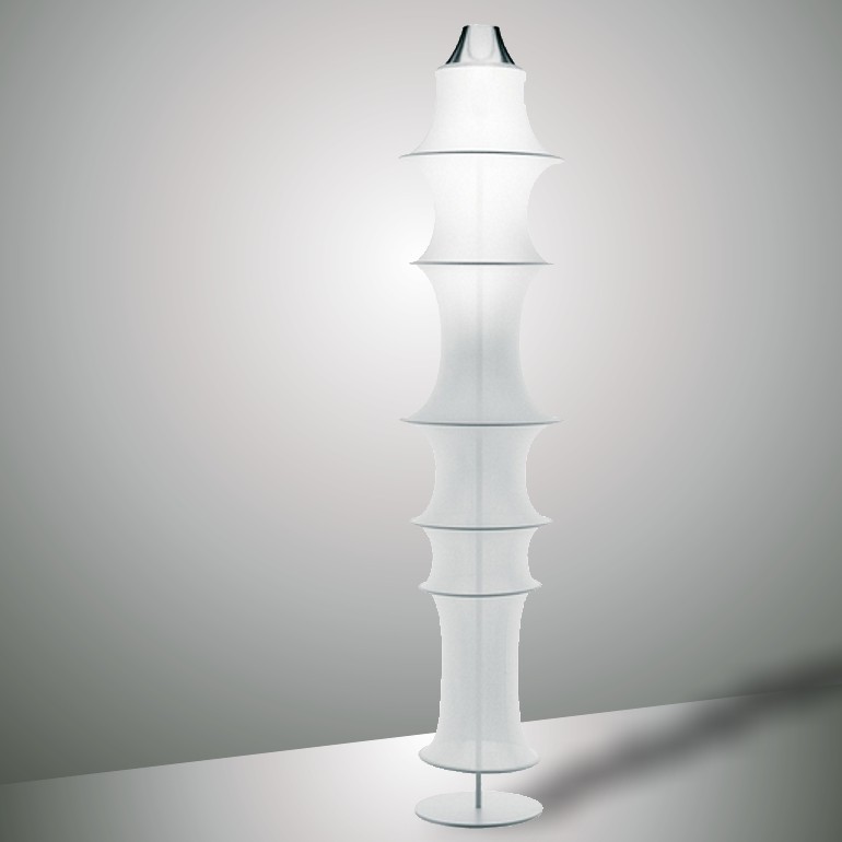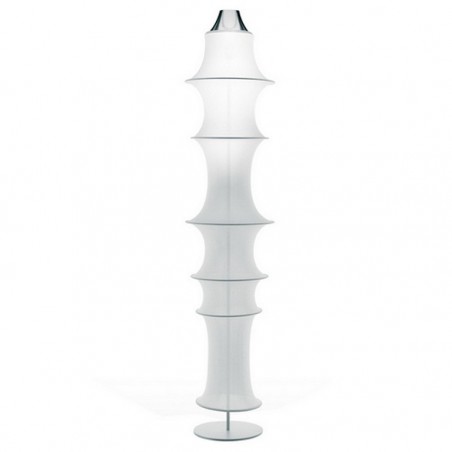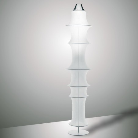 ARTEMIDE - Falkland è una lampada da terra progettata e realizzata da Bruno Munari. Falkland da terra presenta una struttura in alluminio naturale e diffusore in maglia elastica tubolare bianca, a scelta normale o ignifuga, sostenuta da cerchi in metallo. Grazie al suo abito di tessuto, che avvolge tutto il corpo illuminante si crea un avvolgente luce diffusa. Falkland è disponibile anche nella versione sospensione. Nella versione da terra, la Falkland è stata persino inserita nella collezione della Triennale di Milano, famoso museo del design italiano. Il suo design è tanto semplice quanto suggestivo: un tessuto elastico si estende su anelli di alluminio di diverse dimensioni, trasformando Falkland da terra in un oggetto affascinante e misterioso. Grazie al suo abito di tessuto, che avvolge tutto il corpo illuminante si crea un avvolgente luce diffusa. Le lampadine utilizzabili possono essere di tipo alogeno 1x77w o LED 1x8w con attacco E27, escluse.