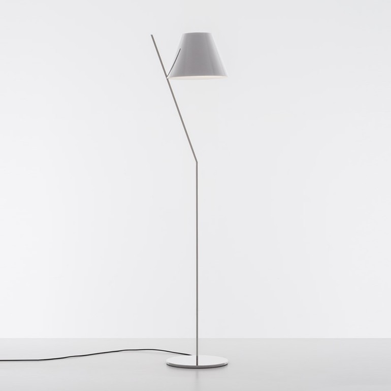 ARTEMIDE - La Petite da terra è caratterizzata da un paralume in equilibrio su uno stelo inclinato. Anche in una lampada così apparentemente semplice ed essenziale si esprime il saper fare di Artemide: la cura di ogni dettaglio dell’oggetto si combina all'attenzione alla qualità della luce. Il paralume è un leggero volume plastico chiuso da due diffusori che producono una piacevole morbida luce diretta e indiretta Il giunto sostiene il paralume su un punto di appoggio minimo collegandolo allo stelo in alluminio. Questi semplici elementi definiscono un insieme semplice ed elegante dove l'inclinazione dello stelo è bilanciata dal volume del paralume. La Petite è realizzata in due versioni di colore: interamente nero o bianco. La petite è disponibile anche nella versione da tavolo e da terra. Lampadina consigliata 12w Led E27 esclusa.