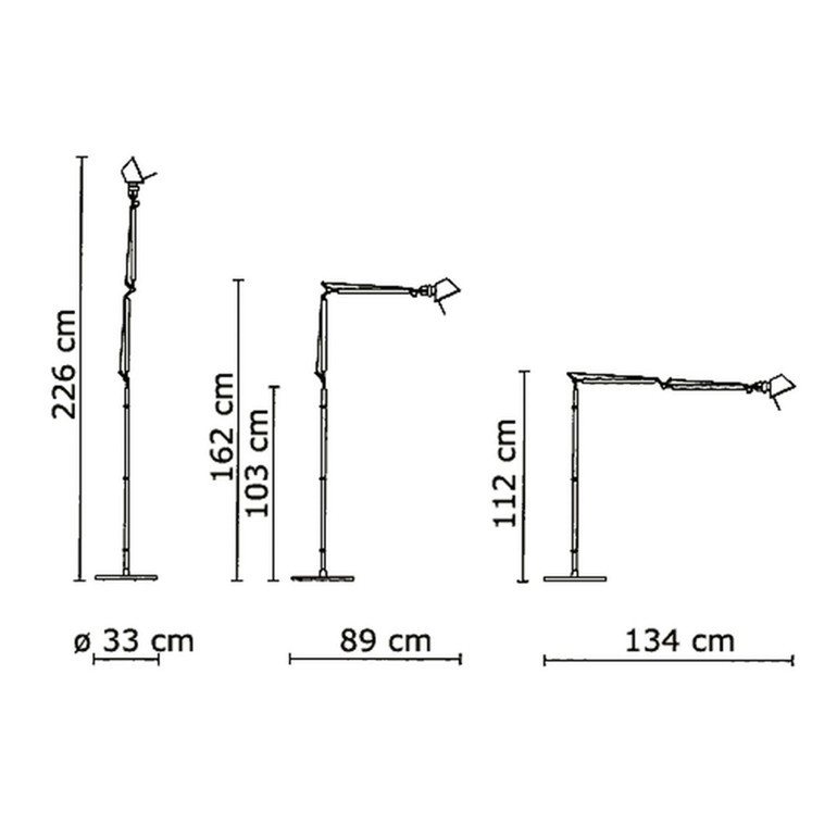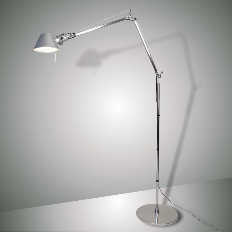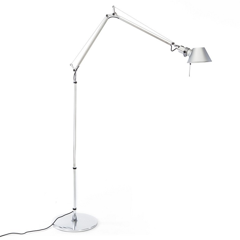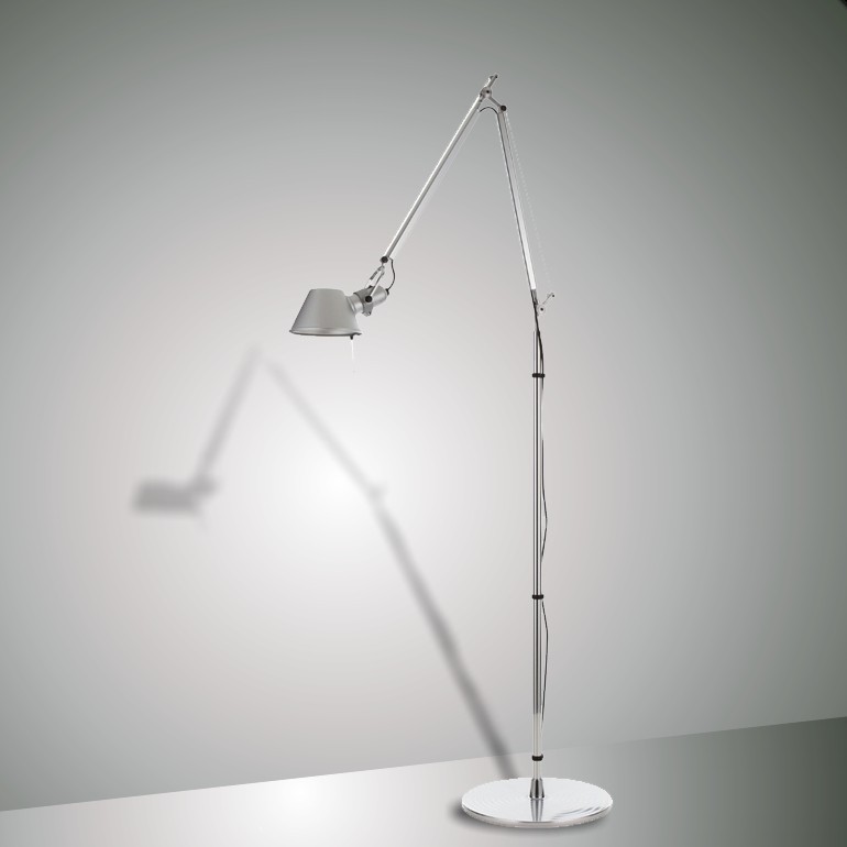 ARTEMIDE – Tolomeo Led terra progettata da Michele De Lucchi in collaborazione con Giancarlo Fassina per Artemide, è realizzata interamente in alluminio e il movimento che le caratterizza è ottenuto da un sistema di equilibratura a molle interne alla struttura. La lampada è con finitura color alluminio satinato per la parabola, mentre il supporto da terra, gli snodi, i perni e i braccetti che permettono il movimento sono in alluminio lucido. Un lampada senza tempo, adatta a qualsiasi ambiente e situazione, divenuta ormai un oggetto conosciuto e apprezzato ovunque. Tolomeo Led terra utilizza un Led da 10w con una resa di 593lm che può essere a scelta con temperatura colore 2700K o 3000k.