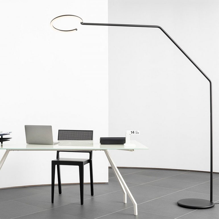 ARTEMIDE – Vine Light è una linea pura ed equilibrata, disegnata dal gruppo di designer BIG- Bjarke Ingles Group, che con solo due snodi raggiunge la massima libertà di movimento per illuminare perfettamente la superficie di lavoro, ma anche per creare molteplici scenari di luce lasciando ad ognuno la libertà di modellare la propria luce con un semplice gesto. La sua presenza minima svela un saper fare e un'innovazione tecnologica che combina e riesce a bilanciare i materiali diversi, pesi, qualità di luce, precisione di movimento e funzionalità. Una sezione ininterrotta di soli 25 mm dà forma alla struttura e ospita tutti gli elementi optoelettronici e meccanici. Collezione vincitrice del premio Wallpaper Design Award "Best Line Work" 2022. Vine Light nella versione da terra ha una sorgente LED con potenza 34W che emette un flusso luminoso di 3233 lm con temperatura della luce 3000K (luce calda). L'emissione della luce è diretta controllata ad alta efficienza. La base misura Ø400 mm mentre la testa Ø350 mm. Base e struttura in acciaio, snodo e riflettore in alluminio, diffusore in tecnopolimero. Vine Light può essere collegata a un tablet o smartphone via Bluetooth, basterà poi scaricare l'Artemide APP (disponibile gratuitamente per iOS e Android) per il controllo delle sorgenti.