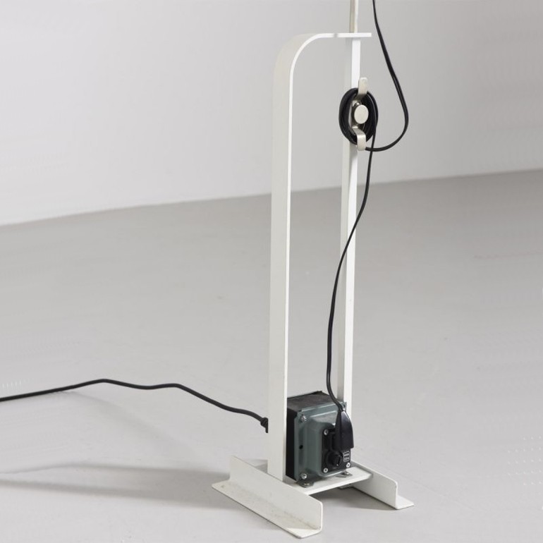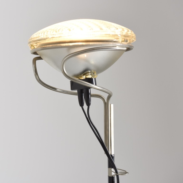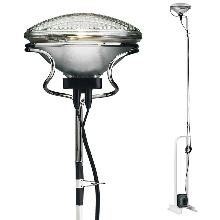 FLOS – Toio è una storica lampada da terra disegnata dai fratelli Achille e Pier Giacomo Castiglioni che è caratterizzata da una base di acciaio tranciato e piegato e da una struttura in profilati d'acciaio, entrambi verniciati a liquido nelle finiture bianco, nero o rosso. L'asta che consente il movimento telescopico e permette la regolazione dell'altezza dell'apparecchio e in acciaio esagonale con finitura cromo. Sul cavo è presente il dimmer che consente la regolazione dell'intensità luminosa fornita da una lampadina Led da 23w 2500°K 1500lm PAR 56 inclusa nella confezione. Il particolare design di questa lampada è progettato per regalare una luce indiretta, ma assolutamente ben distribuita. La specifica verniciatura, le particolari colorazioni, gli elementi semplici che la compongono, rendono la lampada particolarmente elegante garantendo un ruolo assoluto da protagonista in grado di arredare perfettamente qualunque ambiente.