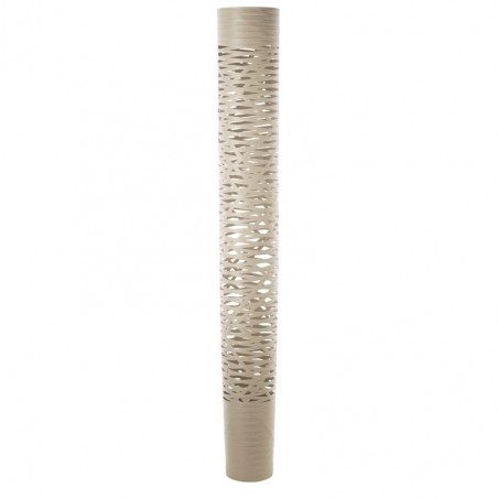 FOSCARINI- Tress grande da terra di Foscarini, progettata da Marc Sadler, è una lampada di design caratterizzata da una particolare lavorazione che consiste nell’avvolgere con modo sapiente un nastro in materiale composito, poi rifinito con particolari colorazioni che danno all’oggetto un risultato finale sorprendente. Tress terra grande dispone di serie di un dimmer per la regolazione della luce principale, posta sulla sommità, fornita da una lampadina con attacco R7s da 230w o Led escluse e un interruttore per quella secondaria, posta alla base, fornita da una lampadina ad attacco E27 che può essere di tipo alogeno fino a 100w o Led anch'esse escluse. Tress terra, in questa versione di grandi dimensioni, è una lampada scultorea adatta per ambienti raffinati, dove con la sua presenza riesce ad esaltarne l'arredamento.
