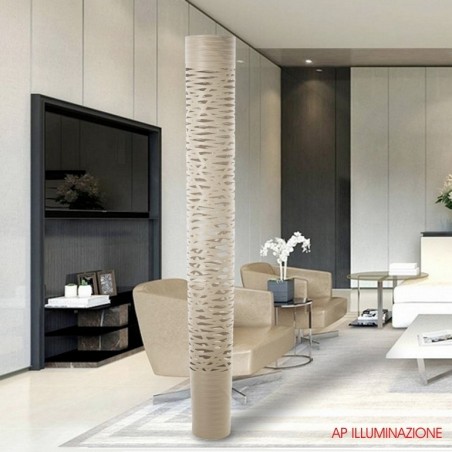 FOSCARINI- Tress grande da terra di Foscarini, progettata da Marc Sadler, è una lampada di design caratterizzata da una particolare lavorazione che consiste nell’avvolgere con modo sapiente un nastro in materiale composito, poi rifinito con particolari colorazioni che danno all’oggetto un risultato finale sorprendente. Tress terra grande dispone di serie di un dimmer per la regolazione della luce principale, posta sulla sommità, fornita da una lampadina con attacco R7s da 230w o Led escluse e un interruttore per quella secondaria, posta alla base, fornita da una lampadina ad attacco E27 che può essere di tipo alogeno fino a 100w o Led anch'esse escluse. Tress terra grande è una lampada scultorea adatta per ambienti raffinati, dove con la sua presenza riesce ad esaltarne l'arredamento.