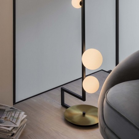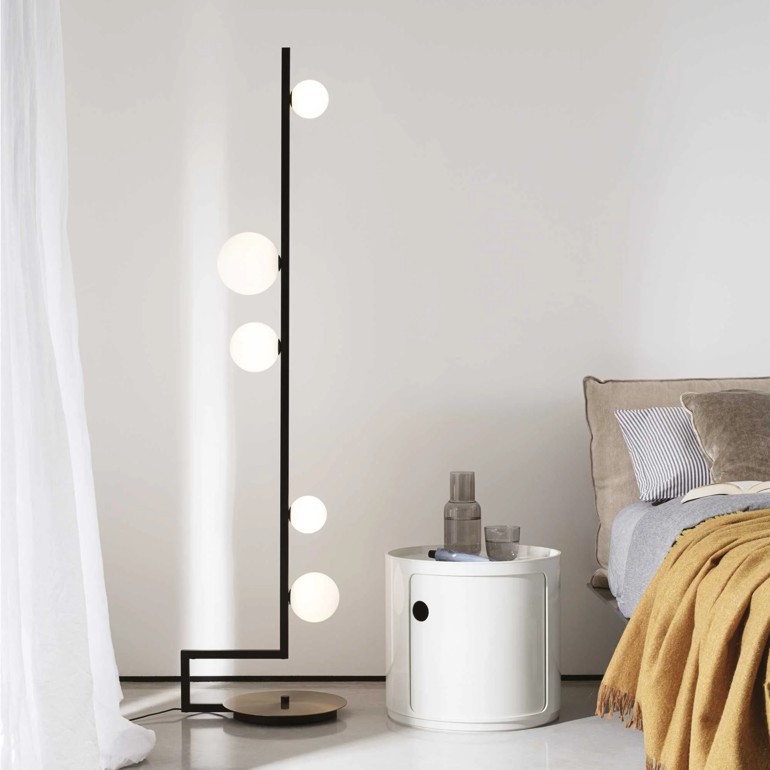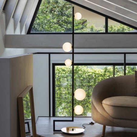IDEAL LUX - Birds PT5 lampada da terra contemporanea che unisce stile e funzionalità, grazie alla struttura verticale in metallo verniciato nero, completata da eleganti sfere in vetro bianco satinato di diverse dimensioni. Progettata per offrire un'illuminazione uniforme e diffusa, è ideale per ambienti come soggiorni moderni, sale da pranzo e camere da letto. La disposizione delle sfere, rivolte a trecentosessanta gradi, garantisce un equilibrio estetico e un’illuminazione funzionale. Le 5 lampadine G9 da 3W incluse emettono una luce bianca calda a 3000K, con un flusso luminoso totale di 1500 lumen, creando un’atmosfera accogliente e raffinata.