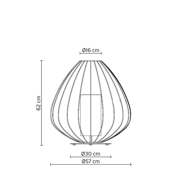 KARMAN – Cell, adatta sia per un uso esterno che interno, emula la struttura e lo spirito di una lanterna cinese sotto forma di lampade da terra: una romantica gabbia di luce realizzata con un sottile filo metallico bianco o bronzo a tenuta stagna. Il paralume è un cuore luminoso di plexiglass opalescente. Disponibile in due forme e due dimensioni, in tutte è presente un portalampada E27 che permette l'utilizzo di lampadine led. Adatta sia per uso indoor che outdoor avendo un grado di protezione IP65.
