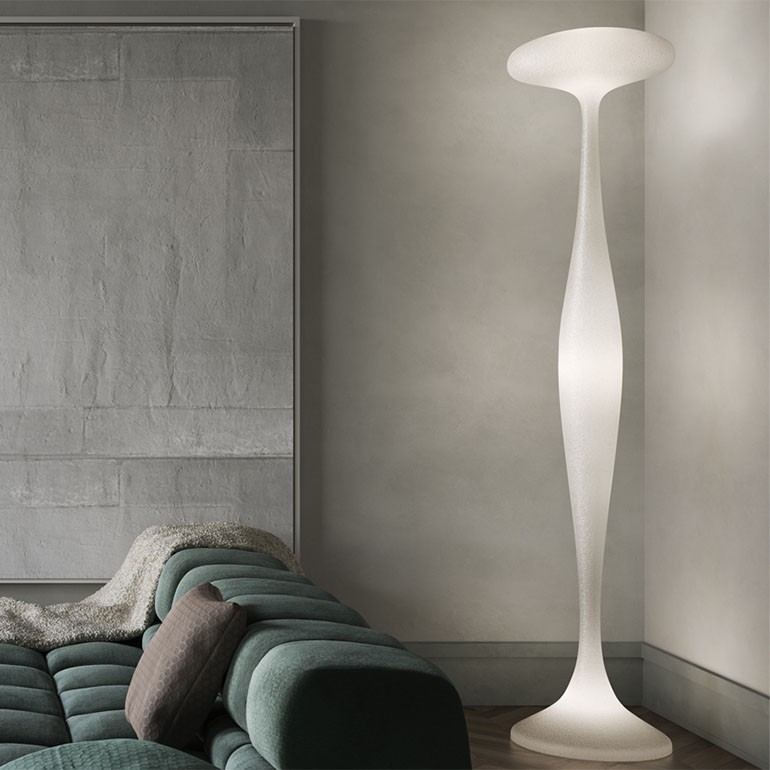 KUNDALINI – E.T.A., lampada da terra con corpo diffusore in vetroresina ecologica lavorato a mano e struttura interna in metallo rimovibile per la sostituzione delle lampadine. E.T.A. è fornita di tre portalampada E14, che permettono l’utilizzo di lampadine alogene fino a 42w o Led, per l’illuminazione interna alla struttura e di un portalampada E27 sulla sommità, che permette l’utilizzo di una lampadina da 77w o Led, per l’illuminazione indiretta e diffusa nell’ambiente. Nessuna lampadina in dotazione. Lampada dalla forma particolare si presta all’utilizzo come oggetto d’arredo, una scultura luminosa che può con la sua presenza dare un tocco di estro e unicità all’ambiente e al contesto in cui viene inserita.