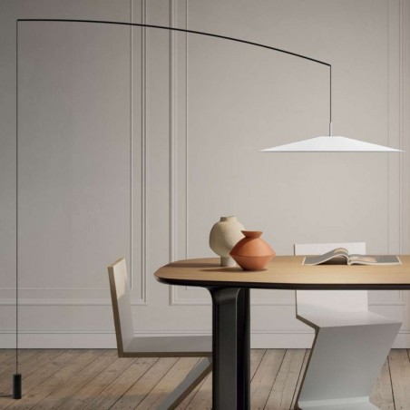 LUCEPLAN – Koinè terra, una lampade caratterizzate da eleganza e purezza formale, ma con al suo interno il vero cuore progetto, un motore luminoso che lo anima.‎ E’ qui che risiede la grande portata innovativa di Koinè.‎ Alla sorgente luminosa è stata infatti applicata una lente minerale, appositamente progettata.‎ Il fascio luminoso distribuito dalla lente risulta omogeneo e pulito, un cono di luce ampio e al contempo dai contorni netti.‎ Il confine tra luce e ombra risulta così nitido e non sfumato.‎ Grazie all’attento orientamento della luce, Koinè terra è priva di abbagliamento, garantendo così un totale comfort luminoso.‎ Il riflettore, realizzato in alluminio di diametro 55 cm. che riveste principalmente un ruolo decorativo, è dotato di un led da 21w a scelta con temperatura colore 2700°K o 3000, mentre l'asta che lo sorregge è realizzata in carbonio.