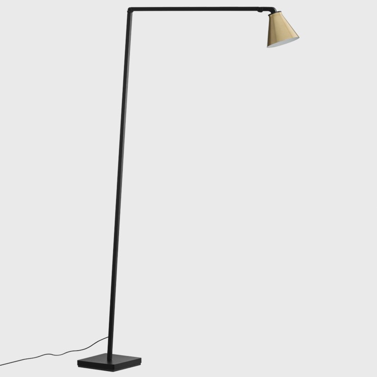 NEMO - Untitled Cone da terra, adatta per la lettura e dotata di un led da 8w 550lm con possibilità di scelta tra temperatura colore 2700°K o 3000°K, è una lampada dal design essenziale in estruso di alluminio verniciato nero opaco, con snodi per il posizionamento flessibile e dinamico della luce. Untitled Cone, con corpo illuminante conico in ottone che ruota su sé stessa, è dotata di Dimmer on board sullo stelo della lampada.
