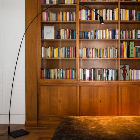 NEMO - FOX è una piantana Led da 15w 839lm 2700°K dimmerabile con illuminazione diretta. Struttura e base sono realizzati in acciaio verniciato nero opaco. Il suo arco con rotazione di 40° e la sua testa cilindrica orientabile di 60° consentono di variare in modo flessibile il fascio luminoso per una luce uniforme e calda. Disegnata per Nemo da Bernard Osann, Fox è una lampada da pavimento particolarmente indicata per l'illuminazione di tavoli e piani di lavoro in genere, ma è consigliata anche per salotti e ambienti di relax e ricettivi.