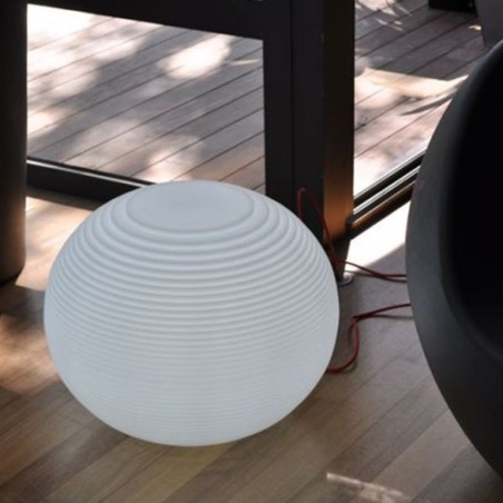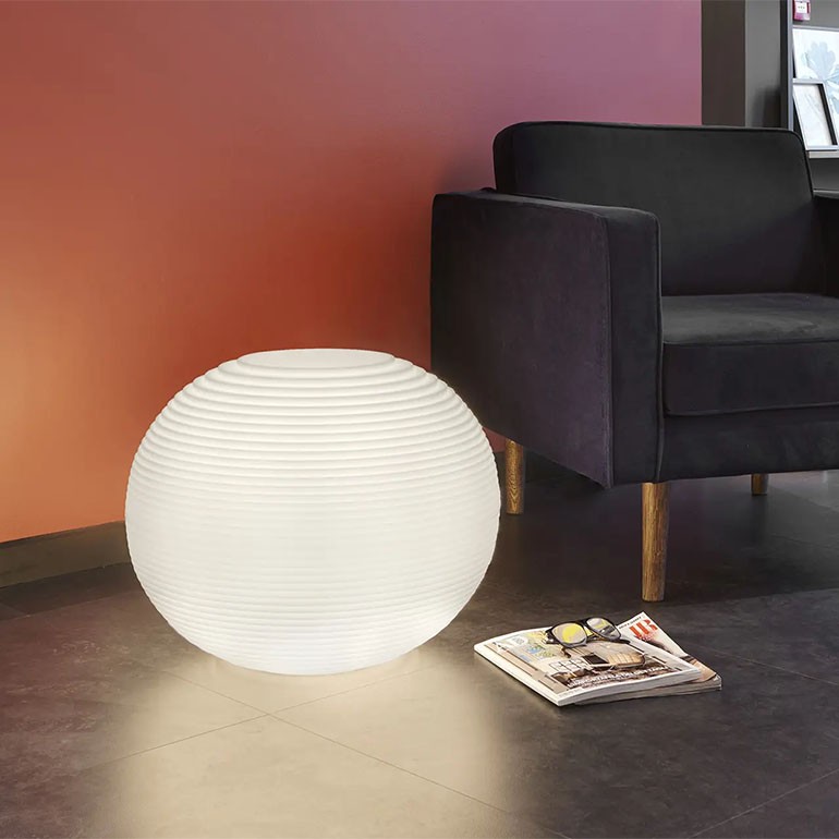 SLIDE - Molly è una lampada che ben si adatta alle tendenze dell'arredo contemporaneo. Elemento sobrio ed elegante, Molly è leggera e resistente, ideale per portare luce e stile negli ambienti living e in ogni spazio domestico e pubblico sia indoor che outdoor. Molly conquista grazie alla sua forma sferica impreziosita dagli elementi in rilievo presenti su tutta la sua superficie. Dotata di portalampada E27 è possibile utilizzare lampadine Led 15w. La versione da interni è provvista di cavo trasparente con interruttore, mentre quella da esterno di cavo e spina nere.