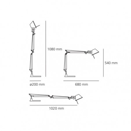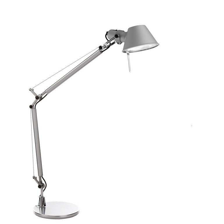 ARTEMIDE – Tolomeo Mini tavolo progettata da Michele De Lucchi in collaborazione con Giancarlo Fassina per Artemide, è realizzata interamente in alluminio e il movimento che le caratterizza è ottenuto da un sistema di equilibratura a molle interne alla struttura. La lampada può essere composta a piacere con base, morsetto o supporto scrivania e combinata con finiture di colore diverse tra bianco, nero e alluminio. In tutte le combinazioni gli snodi e i perni che permettono il movimento della lampada rimangono in alluminio lucido, così come morsetto e supporto scrivania, mentre bracci e parabola sono in tinta per le varianti bianca e nera e alluminio lucido con parabola alluminio anodizzato per la variante alluminio. Un lampada senza tempo, adatta a qualsiasi ambiente e situazione, divenuta ormai un oggetto conosciuto e apprezzato ovunque. Tolomeo Mini consente l’utilizzo di lampadine alogene fino a 77w o Led da 8w E27 escluse.