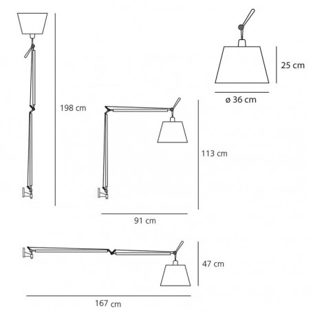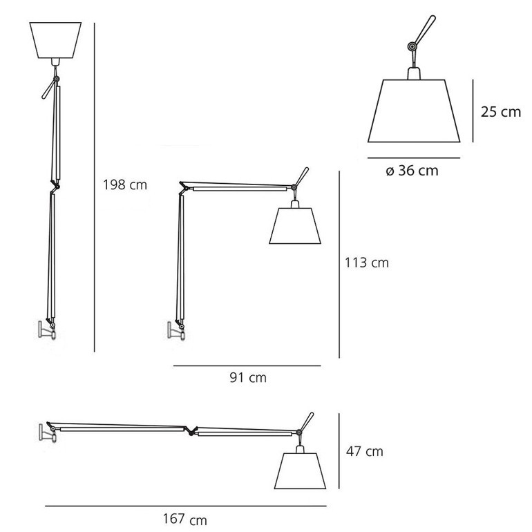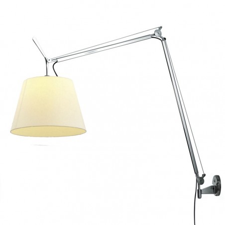 ARTEMIDE - Tolomeo Mega parete, costituita da un a struttura a bracci mobili, dimmerabile o semplicemente con interruttore on off , in color alluminio o nera, con la possibilità di tre differenti misure di paralumi, in color raso grigio, pergamena o nero, risulta essere componibile a piacere secondo il proprio gusto ed esigenza. La luce risulta essere diretta e diffusa il che la rende ideale per svariati ambienti sia classici che moderni o di design. Tolomeo Mega parete la possiamo usare come luce per lo studio, o in una camera da letto, come pure in sala o in soggiorno, un’infinità di possibili utilizzi che rendono questa lampada sicuramente una tra le più versatili ed apprezzate sul mercato. Tolomeo Mega parete dispone di un attacco E27 che permette l’utilizzo di lampadine Alogene fino a 150w oppure lampade Fluorescenti compatte o Led da 21W, che nel caso si dovesse scegliere la versione dimmerabile dovranno essere a loro volta dimmerabili