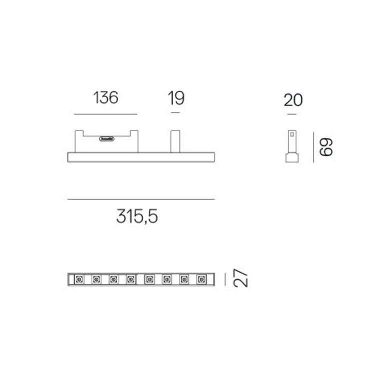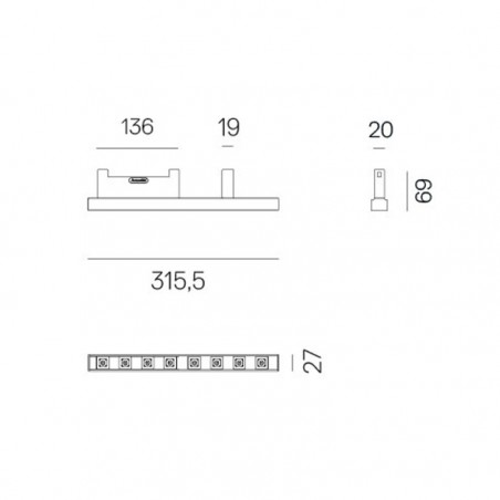 Sharping 8 - L31,5 P27 H20 mm. - Altezza con zoccolo di connessione 69 mm.-