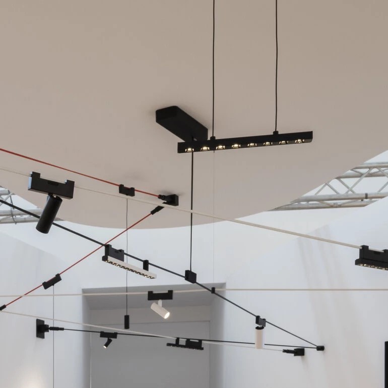 ARTEMIDE - Funivia Drive di potenza con carenatura, collocabile a vista su parete o soffitto, serve per trasformare la tensione da 220V a 48V e tramite l'accessorio Dispositivo di alimentazione cavi da acquistare separatamente, a dare tensione in qualunque punto della struttura. Dimensioni della carenatura contenente il Driver 400x110x50 mm.