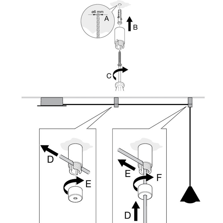 CINI&NILS - Cordina Decentratore è un accessorio utile a formare con il cavo delle sorgenti luminose della famiglia Cordina dei tragitti per portare la luce dove necessita.